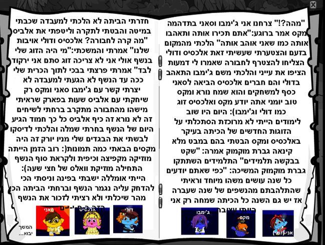 היוצ התגעגעתם? אני יותר(: קיצר זואי התרחקה מהחבורה ופינתה את מקומה לדולי ואלכסיס גימבו התאהב בדולי ואלכסיס הביאה לסאני כסף למשחקים וגברת מוקמוק אירגנה נשף זואי הייתה עצובה ואומללה לא היה לה בן זוג אבל למזלה כל הנשף הייתה מוזיקת טראנס של מסיבות מוזיקה מקפיצה אבל לחצי שעה אחרונות של הנשף שמו מוזיקת וואלס ומוזיקה רומנטית במקצב איטי זואי ישבה בפינה נבוכה ומושפלת שנגמר הנשף לא אמרה אפילו להתראות ונעלמה כהרף עין מקווה שתאהבו נשמותתתת |