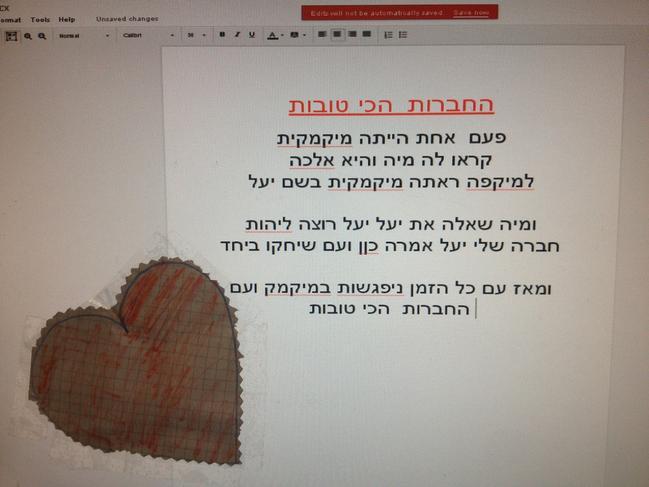 מדובר על חברה שלי שניפגשתי הייתה בבית הספר ואני מספרת את זה בימקום איך שקרה לנו בבית ספר אני מספרת את זה דרך המיקמק תודה