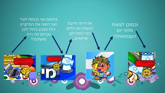 היי כולם! אז היום נכנסתי למיקמק, וראיתי במה חדש שקישטו את העולם של מיקמק לכבוד יום העצמאות!:) אז ברור שנכנסתי... ואז נכנסתי לעיר מבחוץ, וראיתי שעשואת המיקניון מה זה יפהה!!! אז הצטלמתי... אז עשיתי את הלוק הכי חגיגי וכחול לבן שיכלתי.. ולא שכחתי לעשות סלפי יום עצמאות שמח לכל בית ישראל!!! מאוד השקעתי אז מקווה לתמונת היום;) אז חג עצמאות שמח לכולם מהפקות Tehila and Sosh♥