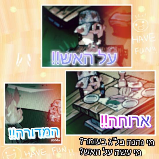 הייי, מה קורה? איזהההה כיף היה לי אתמול בל"ג בעומר!!! אני עשיתי עם המשפחה!:))) מי עשה עם החברים?!(כיתבו לי בתגובות!) אז ל"ג בעומר שמח!!!;))) {לייק=תנו=300+תגובות= תנו 300 לייקים ותגובות!!-קטע חדש חח}