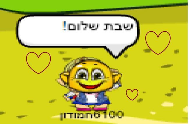 בזמן האחרון יש לי קצת תקלה וזה לא שולח את כל היצירות. בקיצור עכשיו שיש עוד מעט שבת.. אז עשיתי יצירה של שבת שלום! אז שבת שלום וגם היום יום ראשון של החופש הגדול איזה כיף! עם אתם רוצים אותי אני בשרת קוקוס בביקתה אבל אני שומרת שבת אז אני לא עושה עיצובים בשבת.. עימי הסליחה:) ממני "!חמודון עיצובים!" נ"ב:אתם לא מבקשים הזמנות וזה מאוד עצוב כי אז אז אני יהיה חייבת לסגור את החברה שלי ואני ממש אוהבת לעצב...:( יום טוב!אז... יום טוב ושבת שלום! |