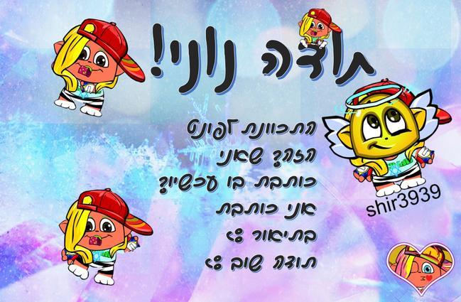 תודה על הפונט המוש♥♥ אם התכוונת לפונט שהשתמשתי בו בכותרת משנה- קוראים לו: BN Sharon Bold פונט מוששש ממליצה להוריד :)) אפילו שאני חושבת שהפונט שנתת לי יותר מוש♥ (מי שלא צפה ביצירה המוש♥ של נוני וגם רוצה את הפונט שכתוב בו "תודה נוני" קוראים לפונט- DashMF.)