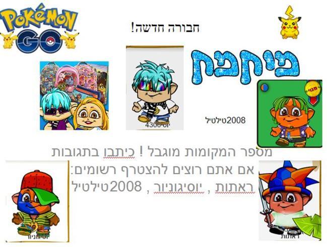 היי פתחתי חבורה מספר המקומות מוגבל! 7 מהמיקמקים, 2 מפורטוגל ומכל שאר הקבוצות 1. מי שלא רשום לאף קבוצה, יש עוד 3 מקומות, כתבו בתגובות אם אתם רוצים להצטרף. אשמח אם מנהל ירצה ליצטרף ואני אצרף אותו. בכל אפן קוראים לזה פוקימון גו.