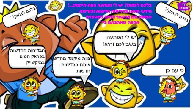 היוצ כולם! לי ולצוות מיקמק יש הפתעה בשבילכם והיא... בדיחות חדשות וקורעות מי צחוק:) מקווה שגם אתם ממש צחקתם מהבדיחות אני ממש נקרעתי מהם מי שלא יודע איפה הבדיחות החדשות הם מיק&שייק טוב אז תודה לצוות מיקמק על הבדיחות החדשות והממקמקות שלהם מקווה שאהבתם אוהבת מלא ביי!
