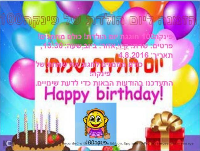 היום הולדת נדחה ל- 15:30. נא להסתכל להודעות הבאות. |