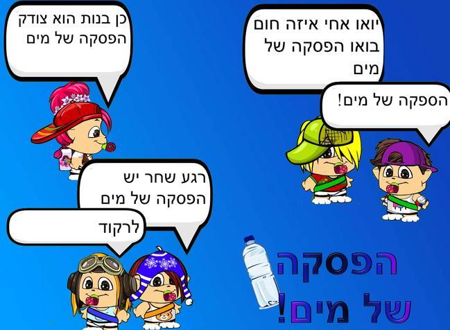 היוצ טוב אז היום עשיתי עיצוב של הפסקה של מים למה? כי תמיד גם עם זה להיות בבית ספר וגם עם זה להיות אצל חבר או חברה תמיד צריך לשתות מים כי זה מאוד חשוב אז תמיד תזכרו לשתות מים (בעיצוב עשיתי ילד אחד שאמר לחבר שלו שמעוד חם לו אז חבר שלו אמר לכולם הפסקה של מים ואז בצד יש חבורת בנות שרוקדות ואחת מהם אומרת שהוא צודק וצריך לעשות הפסקה של מים ואז גם חברה שלה אומרת למיקמקית השניה שצריך לעשות הפסקה של מים )וזה בקיצור העיצוב מקווה שאהבתם יאלה ביי:)