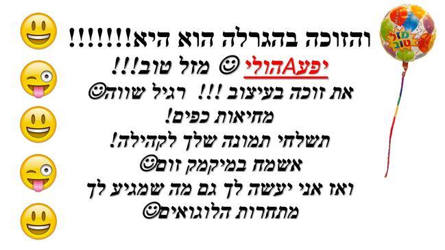 והזוכה בהגרלה הוא: היא!!!! הוליAיפע!