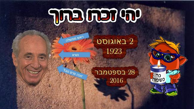 שמעון פרס, ראש הממשלה, הנשיא, זוכה פרס נובל לשלום... נולד ב- 2 באוגוסט 1923. לצערנו הרב, נפטר ב- 28 בספטמבר, לפנות בוקר, 2016... כולנו נזכור אותו. גיבור גדול...