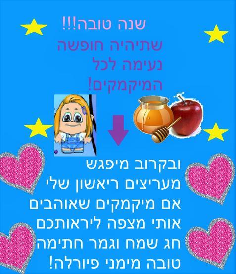 היי מיקמקים שיהיה לכם חג שמח וגם מיפגש מעריצים איתי מחר בשרת אבטיח במיקפה בשעה 12:30 מצפה ליראותכם פיורלה!