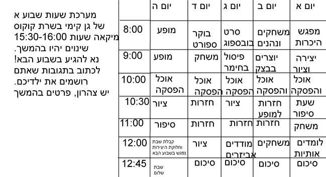 מערכת שעות גן קימי