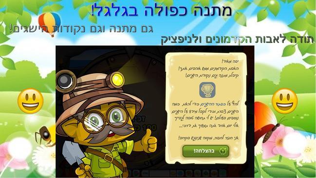 איזה כיף! סובבתי את הגלגל, ולפתע ניפציק הודיע שקיבלתי מתנה כפולה: מתנה + נקודות הישגים!!! ישש!!!