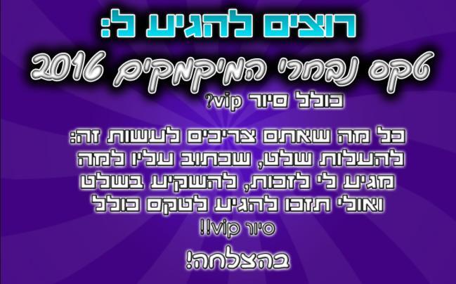 רוצים להגיע לטקס נבחרי המיקמקים 2016, כולל סיור vip מיוחד??