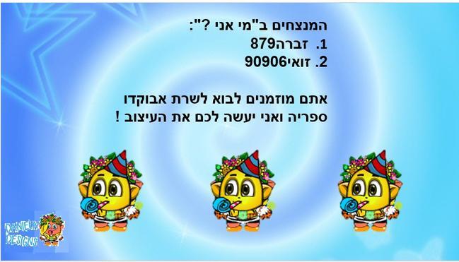 סליחה שזה קצת באיחור....