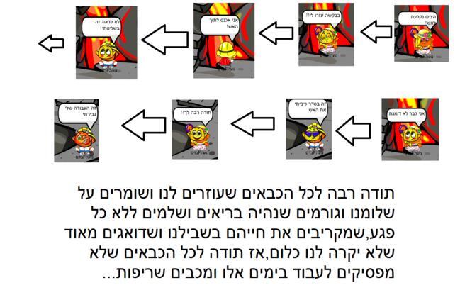 היי לכולם, בימים אלה המדינה שלנו עובדת מצבים קשים,גל השריפות,אז רציתי לומר ש... תודה לכבאים שמקריבים את חייהם בשבילנו ודואגים לשלומנו,שלא ניפגע. שמגנים עלינו מפני השריפות ושומרים עלינו בריאים ושלמים,שהם ולא מישהו אחר מצילים את החיים שלנו!! אם יש לכם עוד משהו לכתוב ולהוסיף כי שכחתי לרשום עוד כנראה אז תרשמו בתגובות אני מבטיחה לקרוא כל מה שתרשמו:) מקווה ש-♥- וילה ביי -נועה-