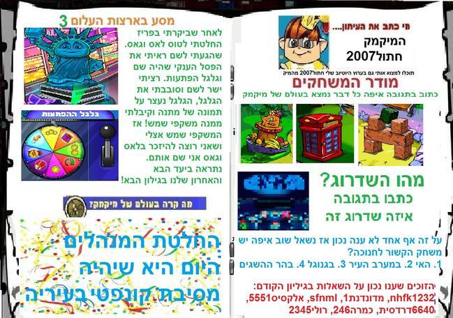 1. הפסל מעץ נמצא בג'ונגל התא נמצא במיק סינמה הקוביות בפארק 2.השדרוג הוא ראש בראש. ואיפה נמצא משחק לחנוכה זה במערב העיר. מקווה לזכות. |