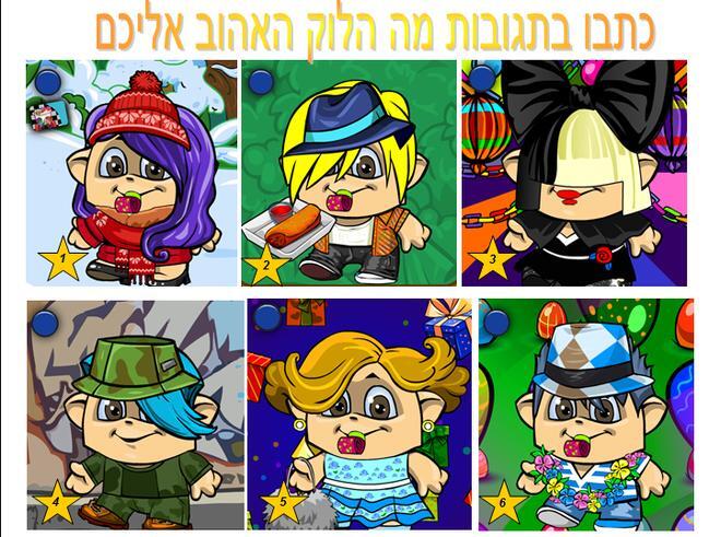 אהבתי מהלוקים של הבנות את הלוק העליון מצד שמאל, ומהלוקים של הבנים את הלוק האמצעי מלמעלה :) |