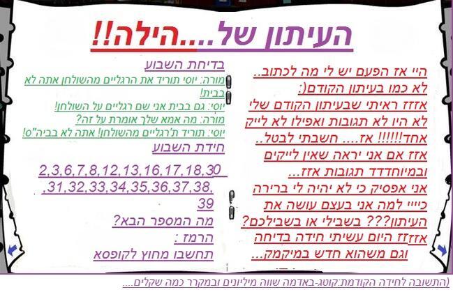 יצא מהמם בבקשה אל תפסיקי לכתוב עיתונים זה מדהים!!! |