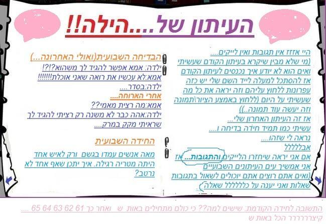 אני מקווה שתמשיכי עם העיתון אני קוראת אותו כבר מזמן אני רגילה כל שבוע לקרוא! |