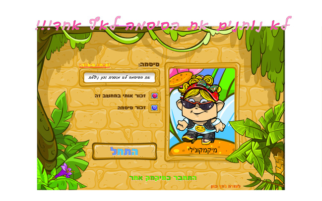 אנחנו אבטחה ובחיים אל תגלו את הסיסמה שלכם אם משהו מבקש מימכם את הסיסמא תדווחו אליו מיד! |