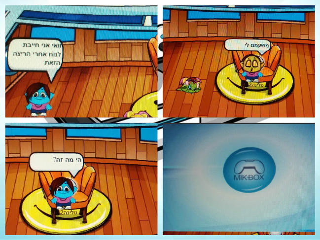 הסבר:טלינה חוזרת לביתה אחרי ריצה ארוכה וקשה,היא מתיישבת על הכורסה ומשתעממת,פתאום היא שמה לב לקופסה ענקית לבנה.היא מבררת לראות מה זה,ומסתבר שזאת קונסולת משחק,ומתחילה לשחק