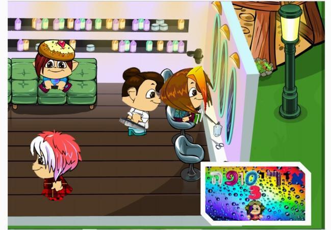 נזכרתי שיש לי מספרה בעולם שלי, ובדיוק חשבתי על רעיון לעיצוב. אז הנה! בתמונה רואים אישה מעצבת תסרוקת של מישהי, אחת מחכה בתור ואחת הלכה.