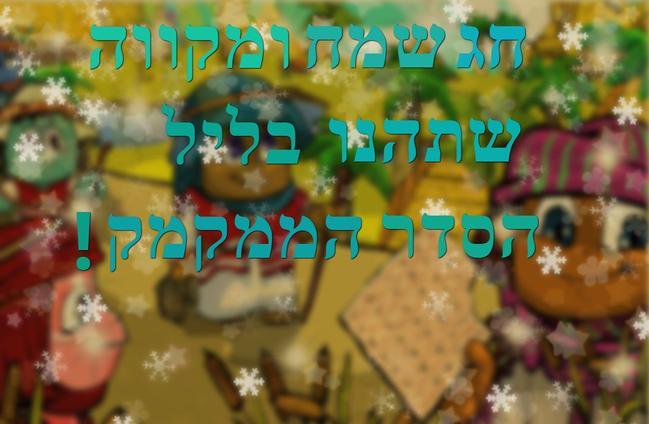 כפי שכולם יודעים ליל הסדר המכונה "ערב פסח" מתחיל היום בערב! ספרו לי אם נסעתם או נשארתם בבית ואיך ההרגשה!? נ.ב היום בבוקר בשעה 10 שרפנו את כל החמץ והבנו לעולם את הכשר :)) אני מאחל לכל המיקמקים חג פסח שמח וכשר! *מקווה לתמונת היום*