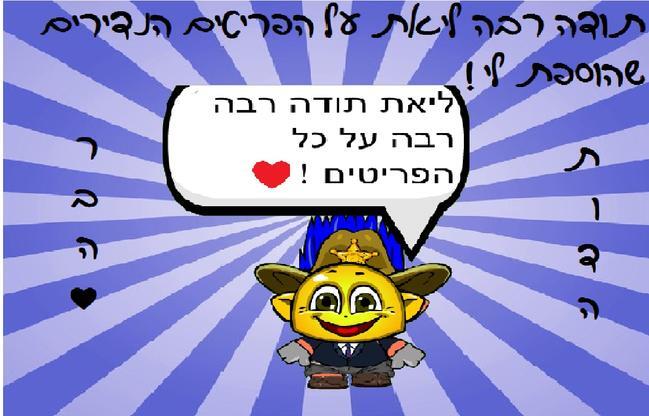 ליאת אני ממש אוהב את הפריטים שהוספת לי תודה רבה עכשיו מקמקת לי את החג ליותר כיף :)))