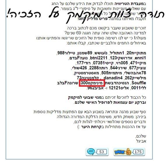 גם אני זכיתי פעם ראשונה, אני בשורה השלישית מילה ראשונה :) |