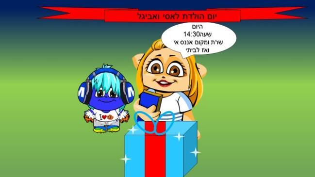 שלום מיקמקים מה שלומכם איך אתם מרגישים? רציתי לספר לכם שעוד מספר רגים הולכת להיות מסיבת יום הולדת לאביגל ואסי בביתי ואתם מוזמנים פרטים נוספים בתמונה