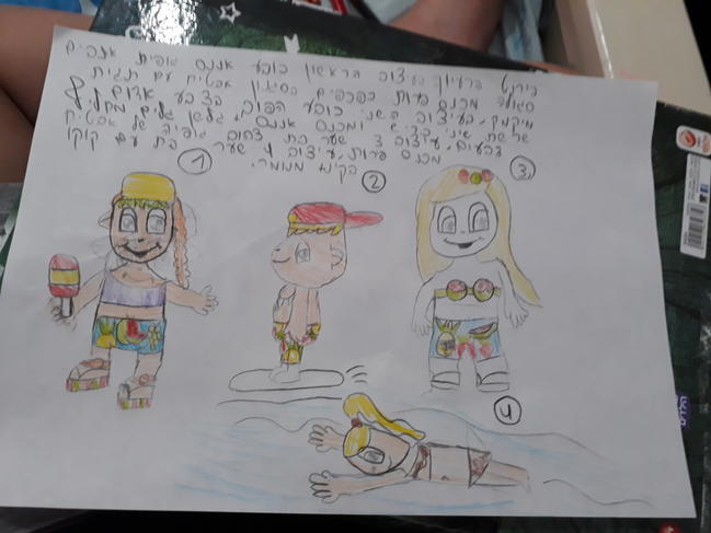 פירוט הרעיון:בעיצוה הראשון כובע אננס גופית אנסים סגולה מכנס פירות כפכפים בסגנון אבטיח עם תגית מיקמק ושער בת,בעיצוב השני כובע הפוך בצבע אדום שרשרת שיני כריש שער בלונדיני ומכנס אננס+ גלשו גלים מחליף צבעים,עיצוב שלישי שער בת צהוב גופיה של אבטיח מכנס פירות וסרט לשער בסגנון תות,עיצוב רביעי שער בת עם קוקו וביקיני מנומר. בהצלחה לכולם
