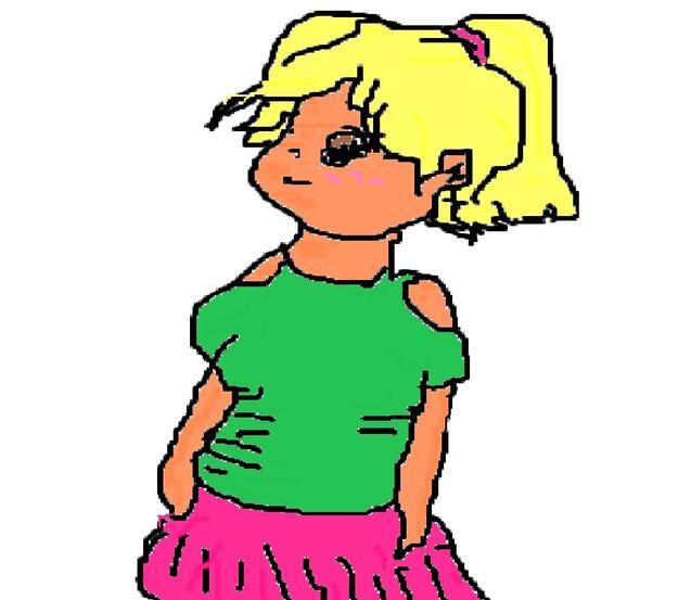 אז ציירתי ילדה ממוקמקת שאם תקחו את הגופיה ירוקה הזו והחצאית הורודה ושער קוקו בלונד וגוון עור אפרסק אז..יש דמיוןXD