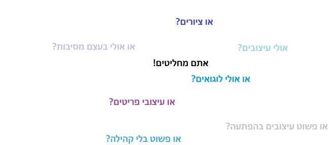 היי מיקמקימוס! אז...לאחרונה יש לי מחסום יצירתי(אין לי רעיונות ליצירות בכלל)ורציתי לשאול אתכם, מה כדאי לי לעשות בקהילה? אולי עיצובים? או לוגואים? או ציורים? או מסיבות? או עיצובי פריטים? או עיצובים בהפתעה? או פשוט בלי קהילה? הבחירה בידיים שלכם! יאללה לבחור כולם! אם יהיו יותר משלושים תגובות אני אחליט. ביי מיקמקימוס!