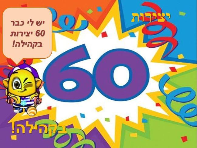יש לי כבר 60 יצירות בקהילה! לא מיקטורף?! ואם זה לא מספיק-העלתי את היצירה ה-50 לפני 3 ימים! כן,3 ימים! כמו ביצירה ה-50- הגעתי למספר היצירות בעיקר בזכות פיצפוצוניק- אז תודה רבה לך! מאז שפתחת את התחרות,דירבנת אותי לשלוח עוד ועוד יצירות-עד שהגעתי מ-18 יצירות ל-60! כמובן שזה גם לא היה קורה בלעדיכם- אתם גם דירבנתם אותי לשלוח עוד יצירות, בזכות כל הלייקים והתגובות ששלחתם לי- אז תודה רבה לכם! מקווה שאהבתם! שלכם, אנה1388:) נ.ב מיקמנייה אני יודעת שזו התמונה של המיקמק שלך,פשוט חיפשתי המון זמן מיקמק קורץ ומצאתי רק את התמונה שלך... מקווה שאת מבינה אותי:/ לא לשכוח לפרגן בלייק!:)