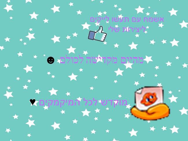 היי מהיום החלטתי להקדיש לכל המבקשים ועם אתם רוצים מוזמנים לבקש מימני אוקי בקשר לתחרות הלוגואים שלחתי תמונה שלי ועם אתם רוצים לעשות לי עיצוב עם התמונה הזאת בשמחה עם אתם רוצים שאני יעשה לכם עיצוב בואו לבקש (אבל לרוב אני שואלת חח) למה עשיתי את היצירה הזאת? כי המון מבקשים הקדשות מימני וזה לא הוגן שמקדישים לחלק אז אתם יכולים לשמוח עם ביקשתם כי אני יקדיש למבקשים ועוד פעם אתם יכולים לבקש ביצירות הקודמות או בזאת וגם בהבאות ואני תמיד אומרת: המשך יום נעים ונפלא אביטל ובי ♥