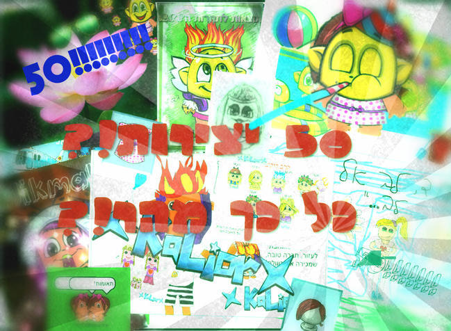 היי לכולם!!!!!!!!! ~~~~~~~~~~~~~~~ זהירות חפירות לפניך! *קרדיט לנועהFבדם* ~~~~~~~~~~~~~~~~~~~ היוםםם 50 יצירות!!!!!!!!!!!!!! אומיגוד!!!!!!!! אני זוכרת את ה-30!!!!! קיצוררר תחרות חדשה!!!!! שמתי לכם אתגר! אבל אתם יכולים לבחור: או לצייר ציור שקשור ל-50 או לעצב לוגו שקשור ל-50 אז חוקי התחרות הם: 1. יהיו זוכים נפרדים לכל אפשרות (זתומרת שנגיד בתחרות של הציור שקשור ל-50 יהיו 3 או 4 זוכים ואותו דבר בתחרות של הלוגואים..) זה אומר שיהיו לנו בין 8 ל-6 זוכים! 2. חייב להקדיש לי על מנת שאראה את היצירה 3. כל ציור/לוגו יתקבל בברכה 4. חובה לכל מי שמשתתף לכתוב זאת בתגובות!