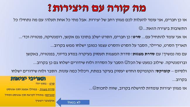 יש! יש! יש! אל תשכח להקדיש לי :) כבר באלי שיתחיל! |