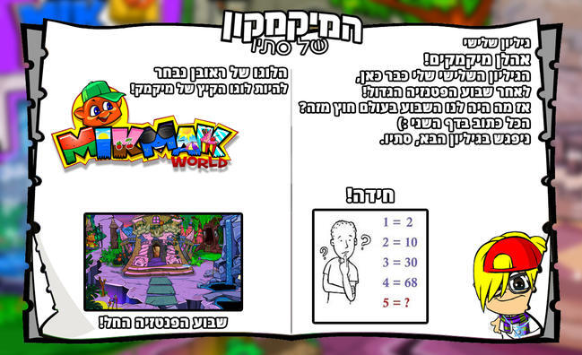 הגיליון השלישי שלי כבר כאן! והפעם, חידה חדשה! יודעים מה התשובה? תגיבו ;)