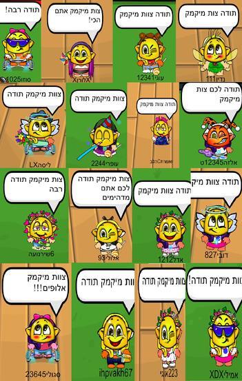 ל 6שירנועה, 223אוגי, אלולי93, אמיליXDX, דובי827, 67ihpvakh, סגולי23645, מיקמק1, מיקמק, AVIGAL, לואי | |