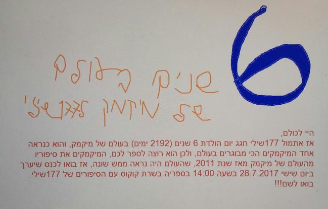 אז 177שילי בן 6 שנים והוא רוצה לערוך כנס כדי לספר סיפורים על 6 שנים בעולם של מיקמק. מתי ואיפה רשומים בתמונה. תכתבו בתגובות אם אתם באים. שווה לבוא!