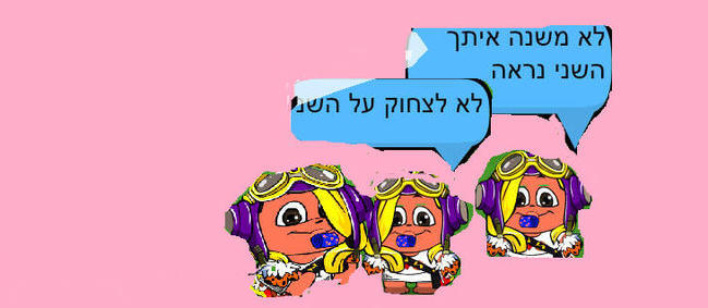 היי אז היום עשיתי נושא על לא לצחוק על השני לא משנה איך אתה נראה מה זאת אומרת מה שעשיתי מה שאני מדברת זה שלא כדי לצחוק על האחר אחרי האחר יפגע היא תעשו את זה למשהו ואחרי יעשו את זה לכם איך תרגישו? תפגעו זה לא נעים שצוחקים על האחר לא משנה איך האחר נראה אבל כדי להיות חבר\ה שלו או שלה פעם אני רציתי לצחוק על איזה שהיא ילדה אבל עצרתי את עצמי הפעלתי שיקוי דעת ואמרתי לעצמי אולי היא תעשה לי את זה? אז זה מה שאני מתכוונת טוב בקיצור מקווה שאהבתם והבנתם
