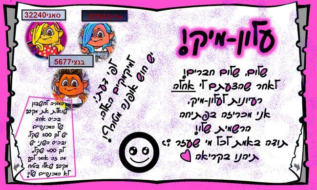 בעלונים הבאים יוכנסו שאר הרעיונות המדהימים שלכם ;)