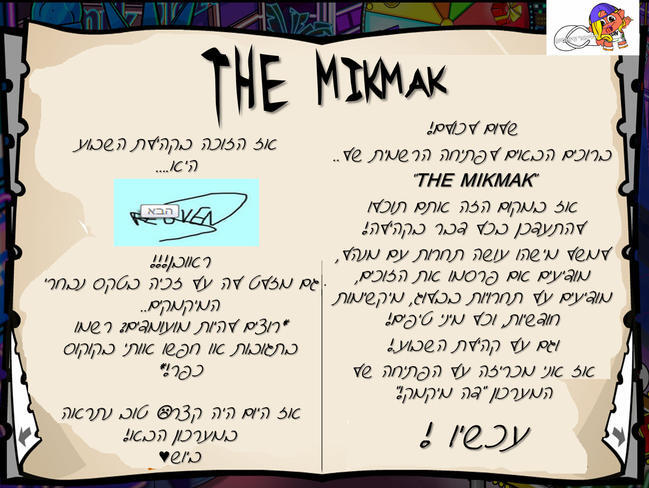 hiiiiiiii (סורי בדיוק חזרתי משיעור אנגלית:) אז סוף סוף זה הגיע! הפתיחה הרשמית של-דה מיקמק! המקום בו תוכלו להתעדכן בל חדשות הקהילה החמות, יש קהילת השבוע! שבה זכתה... תקראו! יש לכם רעיון למדור חדש? כתבו בתגובות! אז... I LOVE YUE♥ (שוב נדבקתי בזההה אוף אני שונאת אינגליש!!) טוב ביוש♥ ----------אין להעתיק!---------- בייי♥