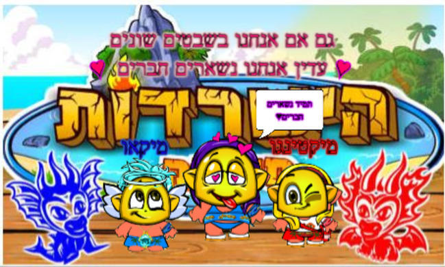 היי תקשיבו לא משנה באיזה שבט אתם תמיד תשארו חברים ואל תריבו או תשלחו מרגלים וכו' כי בסך הכל אתם חברים זה שאתם לא באותו שבט לא אמור להשפיע על החברויות והכיפ שלכם בסך הכל מיקמק רצו לעשות לנו כיפ אז בואו נהנה מזה ____________________________________________________________________________ סורי שהעלתי את זה קצת מאוחר♥ טופ מקווה שתבינו את המסר (זה לא אומר שכולם מתנהגים ככה פשוט יש חלק שככה עשו שזה ממש עצוב שמתנהגים ככה). בבקשה תכנסו#