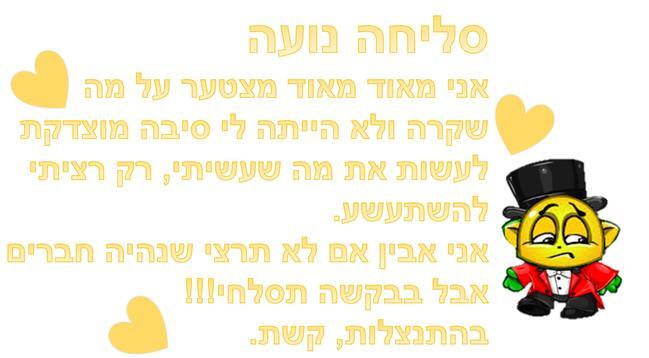 זה ממש חמוד להעלות יצירת סליחה. רואים שאכפת לך ;) |