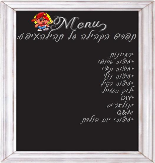 היי מיקמקימוס! אז...הכנתי עיצוב תפריט לתהילה המושלמת♥מקווה שאהבת♥ רוצים גם? חפשו אותי ב: כפר(קוקוס חנות קסמים) ספא ארמון(קוקוס חדר דרגה 2) מערה קוקוס פארק ישן קוקוס חדר דרגה 8 קוקוס(כיף להיות בדד!) פארק ישן קיווי(הגן של מיקאה עבר לשם למיטב ידיעתי) חח הרבה מקומות כיף לגוון;) מקווה שאהבתם♥ ביי מיקמקימוס! ♥