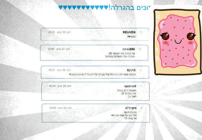 מזל טוב לזוכים! ואני בוחרת ב-6 ואם בחרו בזה כבר אז 8:) |