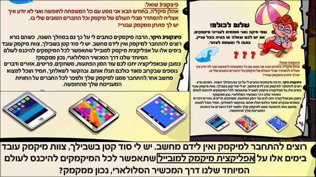 היי מיקמקים! במיקמקון החודשי, במדור של מיקה יש מיקמקים ששואלים שאלות והפעם היא בחרה מיקמק ששאל אותה אם יש דרך להתחבר למיקמק גם לא י=על יד המחשב מסוקרנים לדעת מה היא אמרה? תקראו בעצמכם! חח סורי פשוט אני רוצה להספיק:-0 עוד כמה דברים: צוות מיקמק מתכנן את זה המון זמן וצריך לקוות שזה גם לאנדרואיד וגם לאפל (אייפון) מקווה ש-♥ (תמונת יום?) כל הזכויות שמורות ל ♫ פיצהגבינה גרפיקה,ציורים,ועיצובים בע"מ ♫