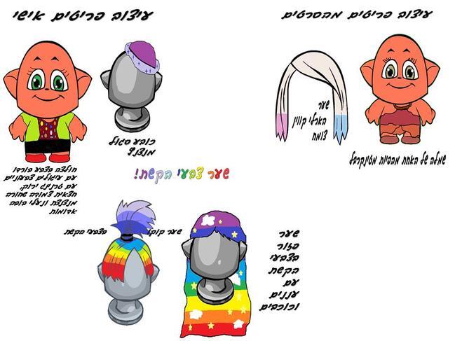 תיאור: אזז עשיתי שער צומח הארלי קווין, שמלה של אחת מהפיות מטינקרבל, חולצה בצבע בורדו עם עיגולים צבעוניעים ועלי טרניג ירוק וחציאית שחורה מנצנצץ, נעלי בובה עדומות וכובע סגול מנצנץ, שער קוקו בצבעי הקשת ו ושער פזור בצבעי הקשת עם עננים וכוכבים.