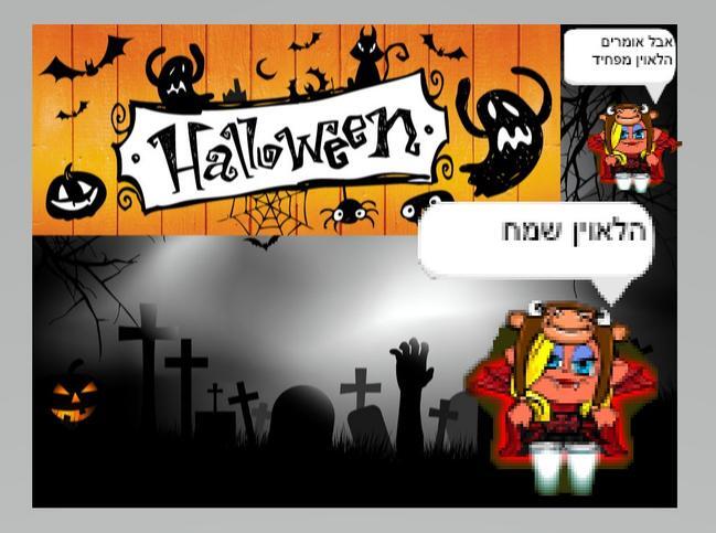 מה קורה מיקמקיישן? אז עשיתי תמונה ל"ליל כול הקדושים" המכונה באנגלית הלאוין, בקרוב תעלה תמונה של הצופים [לקח לי קצת זמן לערוך אותה] שעות פועלה וימים ביצירה הבאה