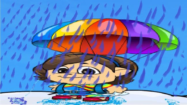 אז המיקמקית שלי יצאה לצניחה חופשית ולבשה בגדים שמתאימים לשמים אבל... היא לא ידעה שעומד לרדת גשם! אז באמצע הצניחה כשהתחיל הגשם היא עלתה על ענן וחיכתה שהגשם יפסק וכמו שאתם רואים זה לא כל כך עזר...